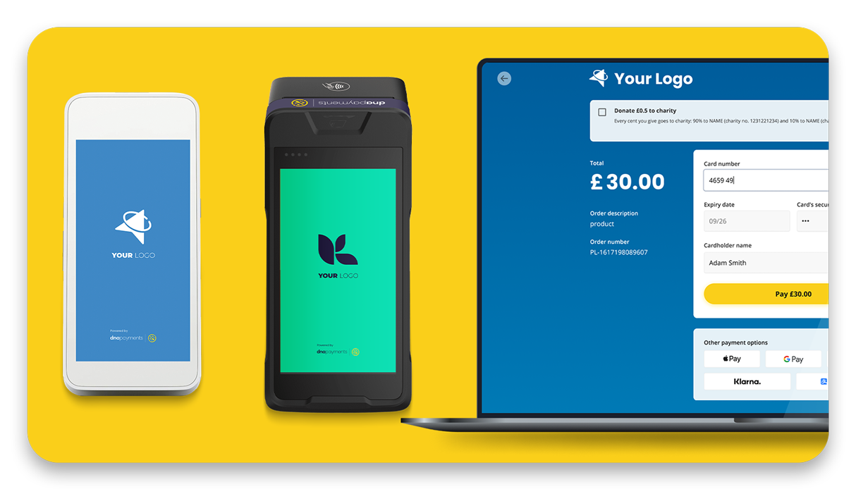 If you'd like your Card Machine, or your Online Payment Solution to be customised with your brand and styling, just get in touch with our Support Team and we'll do the rest