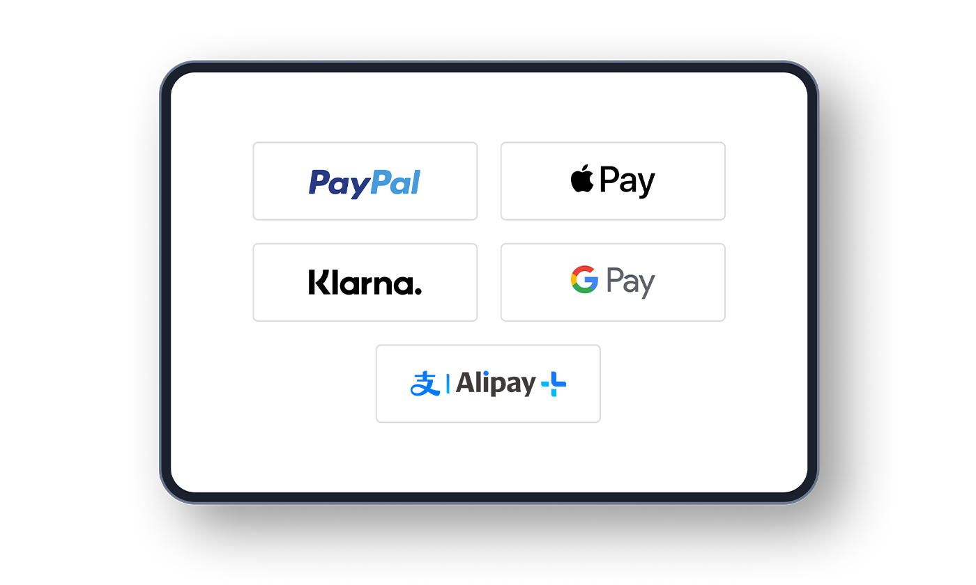 Your customers will make their transactions using their preferred payment methods including Apple Pay, Klarna and PayPal